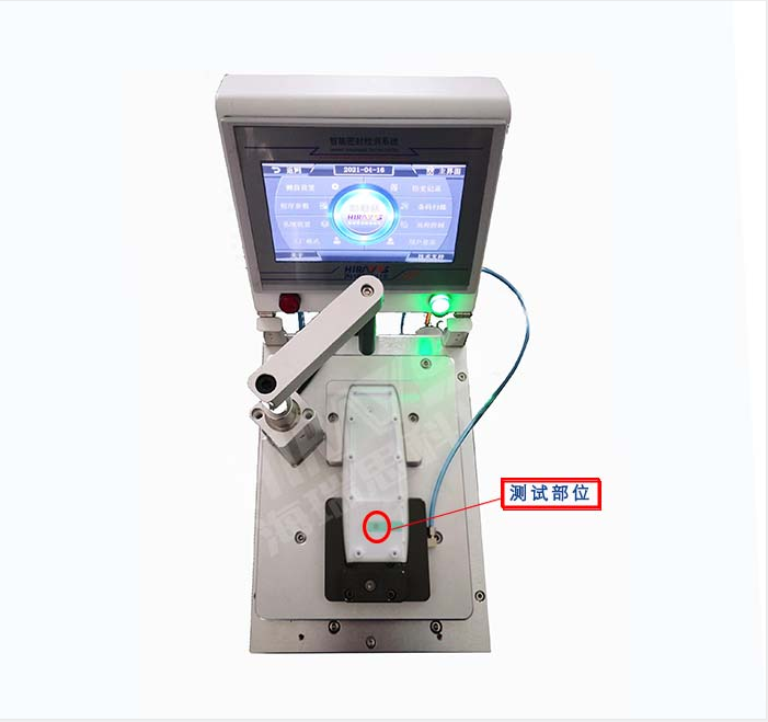 解决方案:直接的测试方法,根据洗牙器的结构设计测试模具对测试部位进行封堵,将洗牙器底壳放到模具上后,上模转到测试部位上方下压,固定测试位置。先进行负压测试,仪器对测试部位进行抽气(抽气时间2S,压力-10KPA),负压测试通过后进行加水充气测试(加水压力20KPA 时间2S,充气压力17KPA,充气时间5S,稳压时间5S,测试时间5S)。