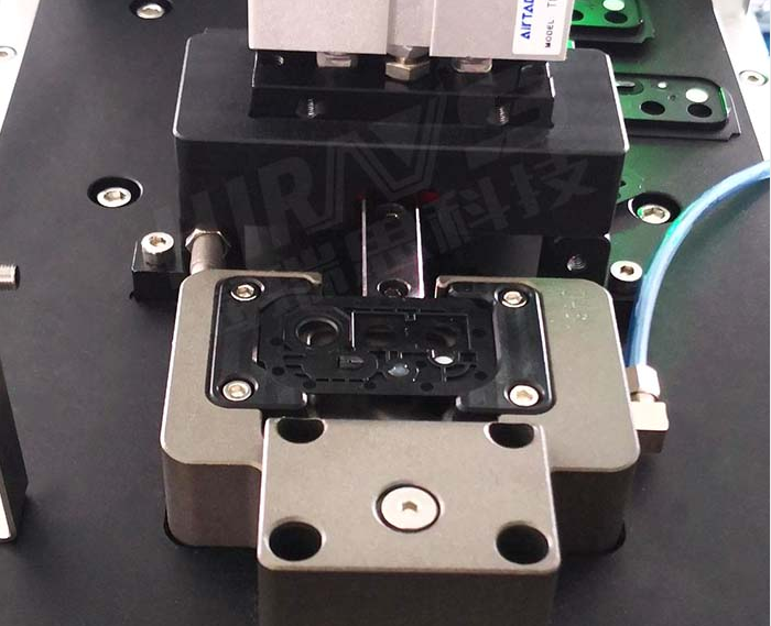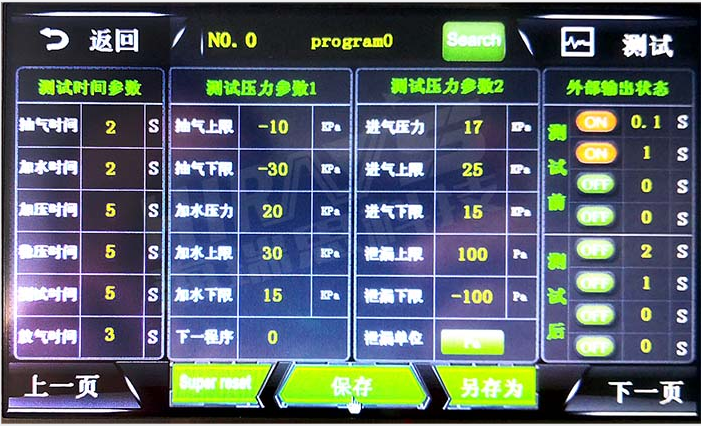 检测方案:直接测试方法,根据手机摄像头的结构定制模具,模具需要安装到仪器上。将摄像头放入模具中,按下启动键后模具将摄像头夹紧并固定在指定位置,仪器进入测试程序,先用-10压力对测试部位进行抽气2S,用以检测摄像头防水透气膜是漏贴。再对测试部位进行加水加压,加水时间2S,压力20KPA,加压时间5S,稳压5S,测试5S,如果透气膜能进水,说明摄像头防水测试不通过,测试结果也会显示NG。