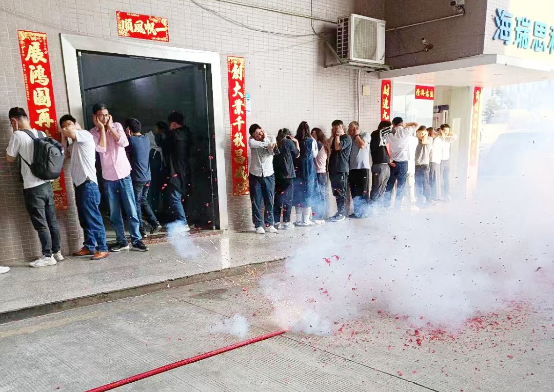 东莞海瑞思也紧随其后,海瑞思测控大楼处,爆竹声声,响彻云霄,预示着新的一年东莞海瑞思生产经营红红火火,2024年做大做强。