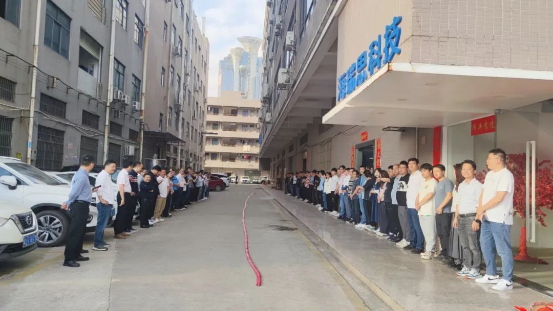 上午8:18点,海瑞思开工仪式正式开始。全体员工齐聚深圳海瑞思一楼门口,共同见证这一重要时刻。
