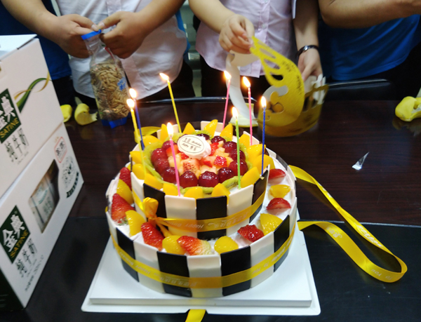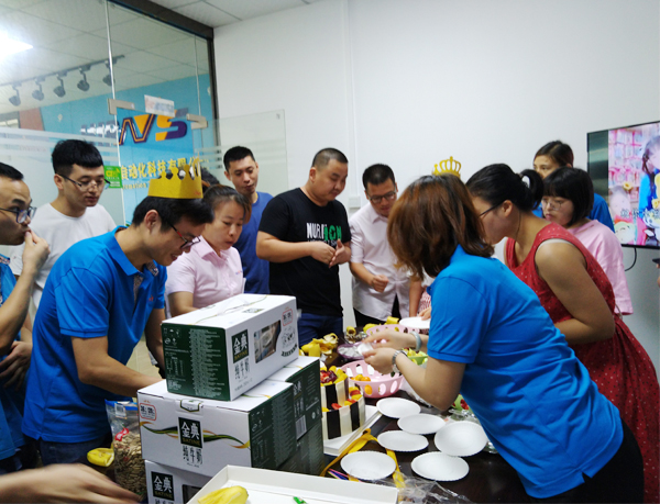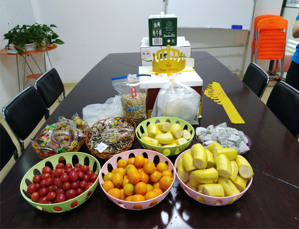 香甜可口美味蛋糕,丰富水果点心!大家围在一起共同享用,互相畅聊工作与生活,分享着生日的喜悦!