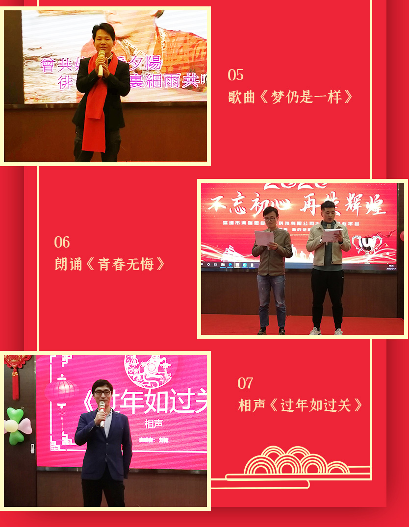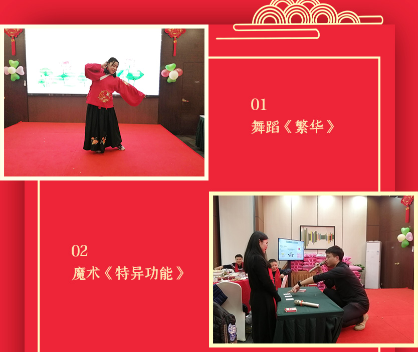 在这个幸福的时刻,美味佳肴当然和精彩节目最配啦。海瑞思的小伙伴不仅工作能力强,而且多才多艺哦!海瑞思科技坐落在深圳这个蓬勃向上的城市,公司的80%的小伙伴是一群年轻后生,他们为大家带了说唱《拜大年》和网红歌曲《大田后生仔》,销售总监黄总带来的歌曲《梦仍是一样》和廖总带来的 《夜半小夜曲》,让我们感受到他们不仅在工作上金戈铁马,同时内心仍然有一片温暖的海洋。不仅有歌曲还有魔术《隔空取物》《特异功能》让我们再次感受到海瑞思真的是卧虎藏龙之地!不仅有歌曲,魔术还有舞蹈,海瑞思才女张菊为大家带来的舞蹈《繁花》将晚会推向了高潮。最后我们的海瑞思张总的小公主为大家带来了诗歌朗诵《我的爸爸》,小姑娘稚气的声音,美好的诗句温暖了整个晚会.让我们这些离家很久的浪子忽然有一种归心似箭的感觉