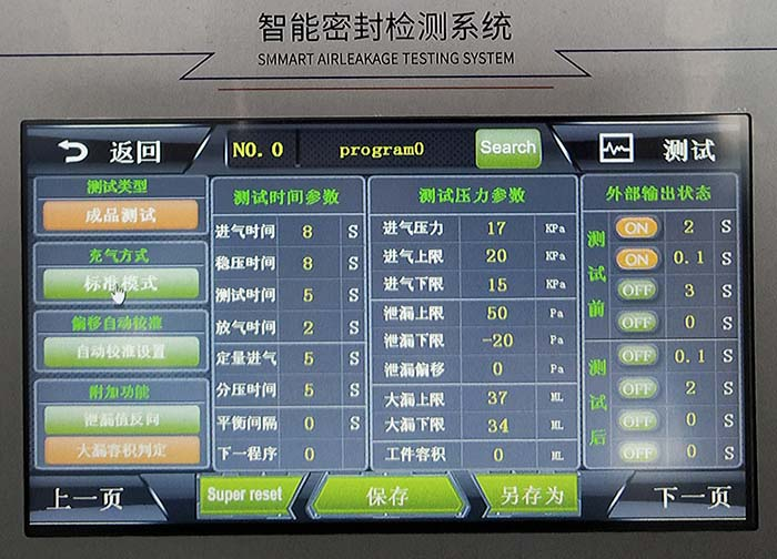解决方案:采用间接测试方法,测试压力17KPA,充气时间8S,稳压时间8S,测试时间5S,泄漏上限0.05KPA。根据灯条的外形设计防形模具,由于灯条较长,我们将模具安装在工装的内部,将灯条放入模具中按下启动键,模具通过滑台上滑到指定位置,上模下压与下模闭合密封灯条整体。仪器通过充气、稳压、测试等过程进行检测,检测结束后还会根据设定的参数自动对测试结果进行判定OK或NG。
