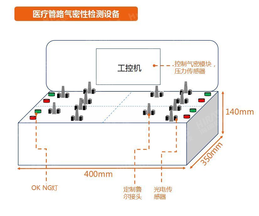 检测时可采用海瑞思医疗管路气密性检测设备,是海瑞思专门为医疗连接器设计的气密性检测仪。外形如下图:
