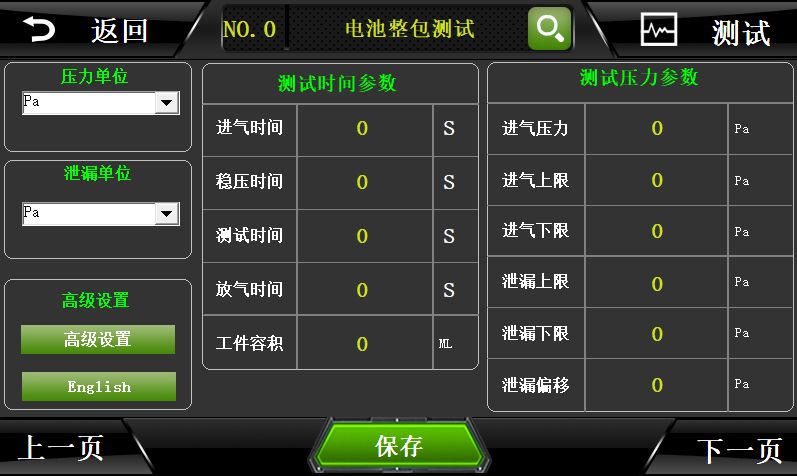 4. 开启“仪表归零”功能,确保测试气压正常;