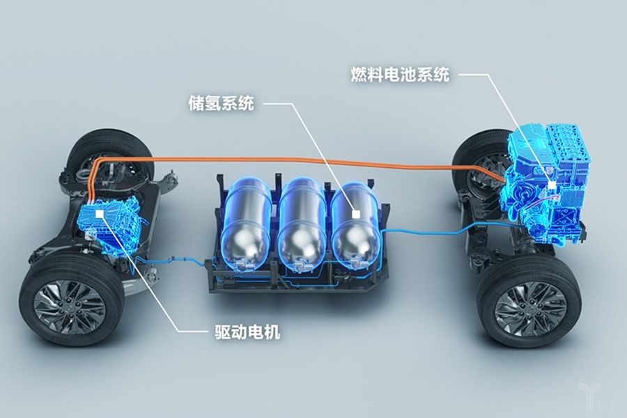 顾名思义,储氢系统就是存储氢气的部分,由储氢罐组成;燃料电池系统主要包括燃料电池堆和氢喷系统、供氧系统、冷却系统和相关管路等部件;而驱动电机由电机系统组成。
