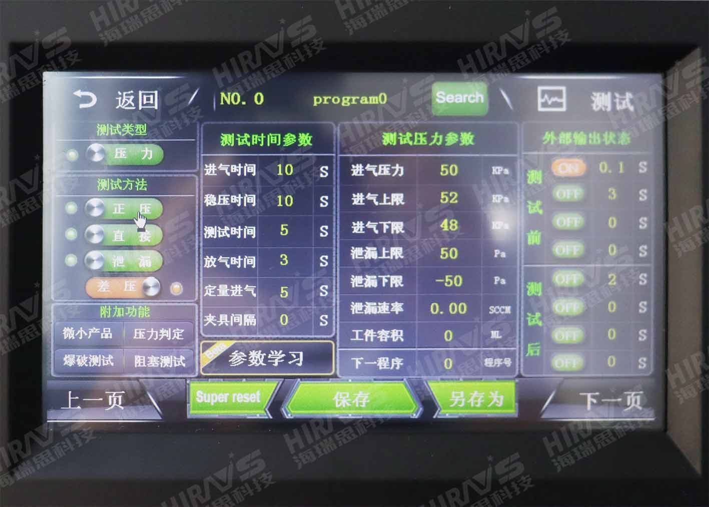 定量进气5s,充气50kPa,10s后开始进入稳压阶段,持续10s,测试5s,期间如果泄漏值没有超过50Pa,即说明该待测品的气密性合格。