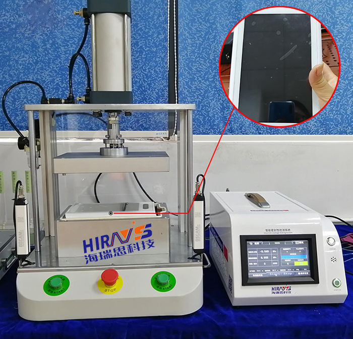 这种需要将测试产品放置在模具中密封起来进行测试的设备被称为密封测试仪。下图是海瑞思科技根据测试产品外形做的气密性检测设备。