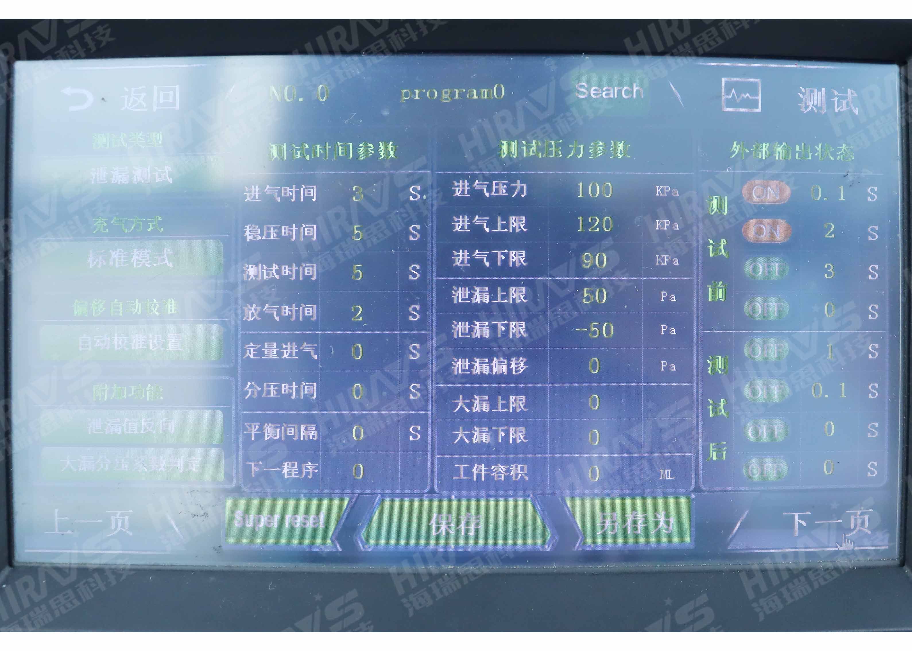 程序参数:进气压力100Kpa,进气时间3s,稳压5s,测试时间5s,放气时间2s。如果泄漏数值不超过50pa,说明该线束气密性检测通过,测试结果也会显示OK。