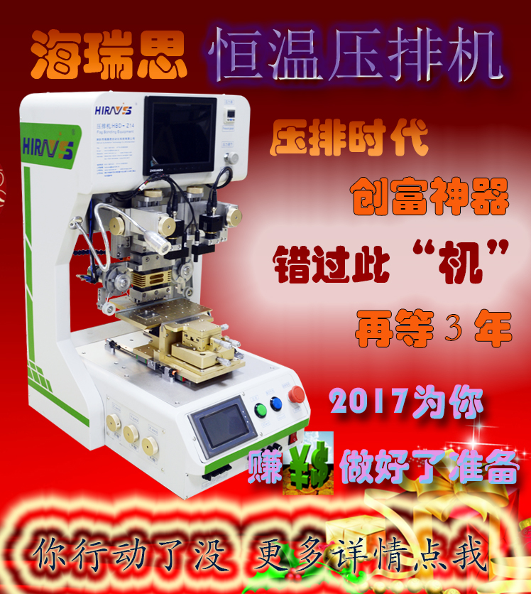 所以,如果一台压排机除压头加热机构加热方式不同的情况下,上述第(2)至第(10)都相同的情况下,那么脉冲压排机比恒温压排机贵,可是事实刚好相反,很多厂家为了追求利润的最大化,除了压头部分使用了脉冲部件贵一点外,其他的第(2)至第(10)机构都使用了一些较差的部件,甚至省去了一些机构,只能靠使用者人工去完成大部分工作:比如手动对焦、手动对排线、手动卷硅胶皮等。而恒温压排机现在之所以反比脉冲的贵,如深圳海瑞思生产的恒温压排机来说,除恒温加热部分成本低一点外,其他的机构都用的是较好的材料或加了一些可以提高自动化程度的辅助机构,还有就是解决了压头快速降温问题,所以会贵,但使用起来更方便。手机压排品质更有保证