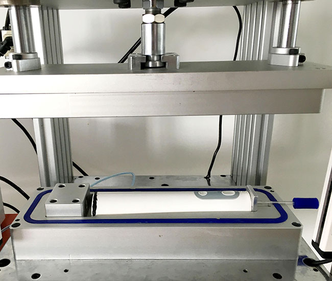 综合洗牙器以上检测需求,海瑞思科技采用气密性检测方式来检测防水性,我们为需要做防水性检测的洗牙器制作一个合适的模具与工装,把洗牙器放到模具内,形成一个密封的检测空间,然后工装将对模具进行充气,由于洗牙器防水检测设备的精密压力传感器感到的变化传给防水检测系统,最后经过一系列的运算就可以得出气体的泄漏值,之后根据泄漏值检测出洗牙器的密封性能和IP防水等级。