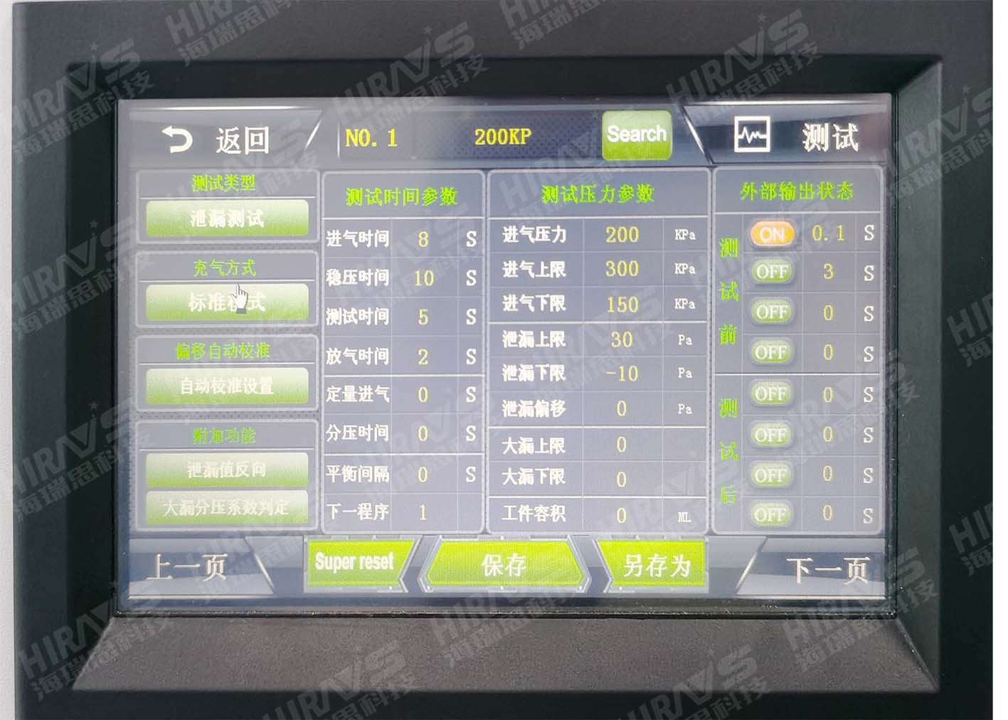 采用成品、大漏容积判定的测试方法,把待测品放入模具中,按下工装的启动键,开始测试。充气200Kpa,充气时间8s,稳压时间10s,测试时间5s,泄漏上限30pa。测试过程中,如果泄漏值超过设定数值,则说明该待测品为不良品,反之则为合格品。
